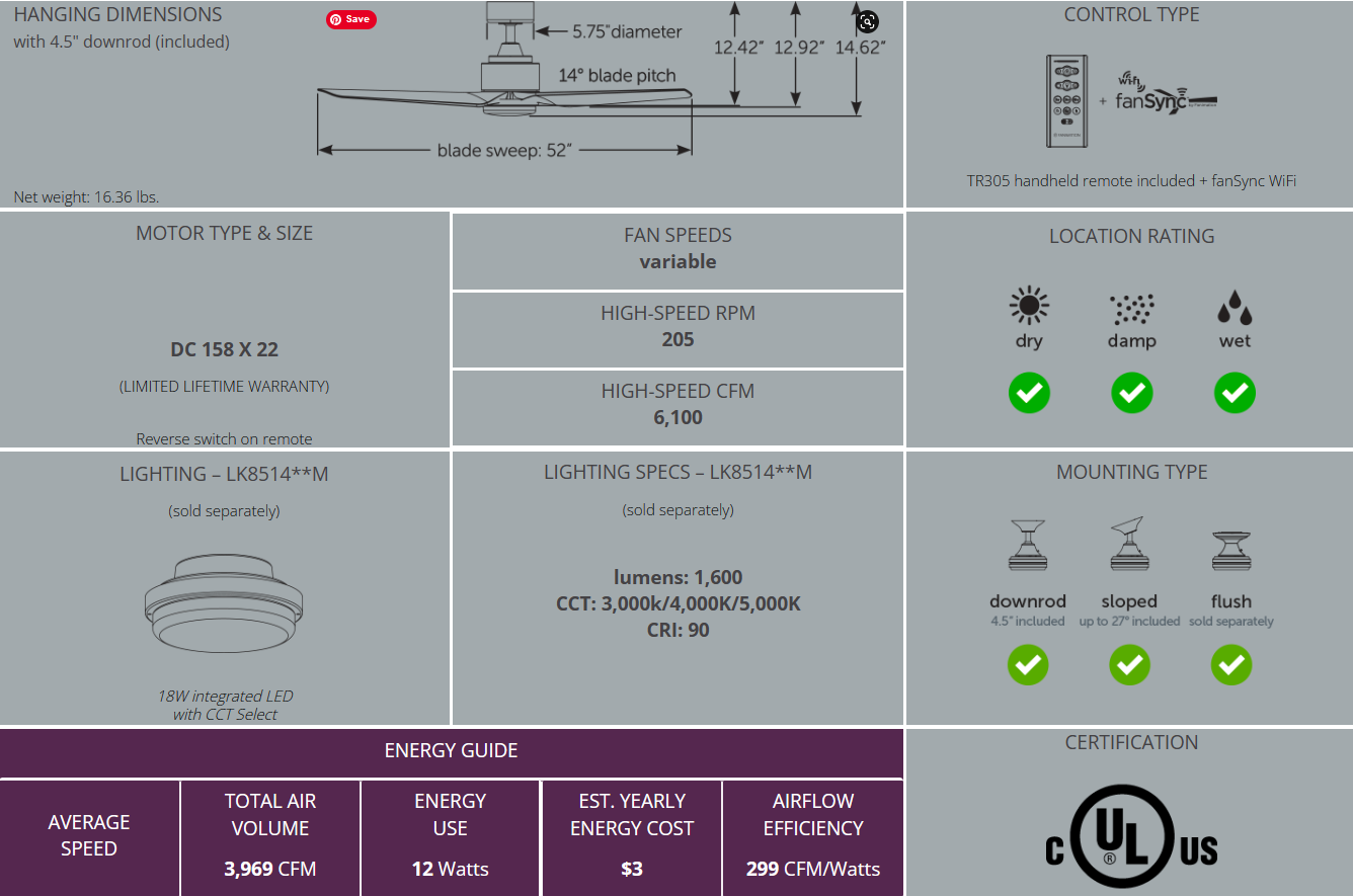 This TriAire Marine Grade Outdoor Fan is the perfect solution for coastal or marine environments. Wet-rated, and constructed from stainless steel and composite materials, this fan is designed to resist rust and corrosion. Enjoy reliable performance and peace of mind for seasons to come.